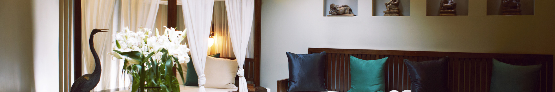 Zariadenie je realizované v tradičnom ázijskom štýle zo zbierok dovezených priamo z Indie, Thajska, Číny a Indonézie. Nábytok z tíkového dreva, hodvábne závesy, sarongy, sochy, obrazy, doplnky boli vyberané so zámerom priniesť kúsok tohto čarovného exotického sveta k nám na Slovensko. Cieľom je umožniť klientom vstúpiť do úplne iného sveta a odosobniť sa zhonu za dverami. Vypnúť telefón a oddať sa len pohode a relaxu.