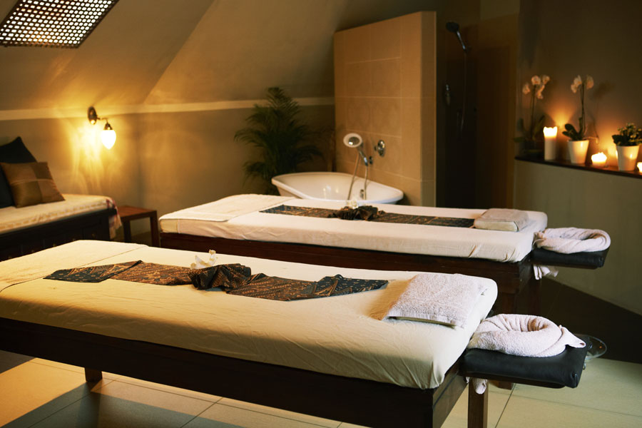 - 3 uzavreté samostatné miestnosti na tzv. mokré rituály s osobnou sprchou, vaňou, úpravovňou a dvomi masážnymi stolmi pre jednotlivcov alebo výhradne partnerské / priateľské dvojice